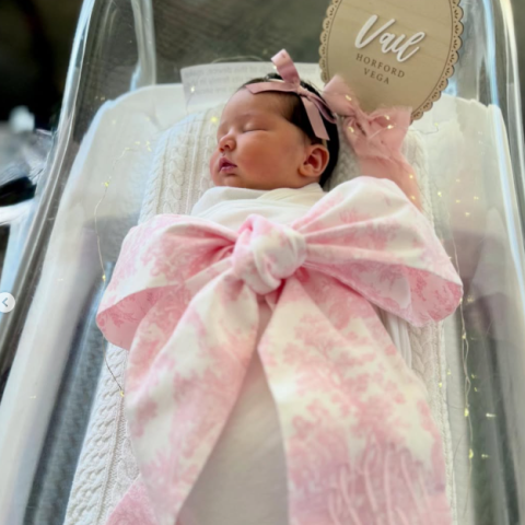 Con tiernas fotos de una pequeña criatura vestida de color rosa Amelia Vega, ex Miss Universo dominicana, comunicó la noche de este domingo el nacimiento de su sexto bebé, procreado junto a su esposo Al Horford.