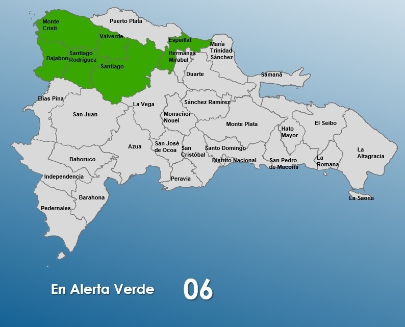 Las provincias en alerta son: Santiago, Dajabón, Espaillat, Valverde, Montecristi y Santiago Rodríguez.
