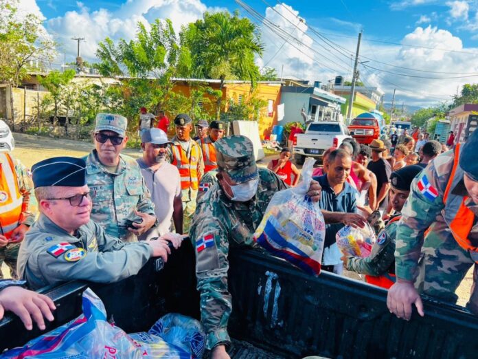 Durante la jornada, el alto oficial estuvo acompañado por la señora Claritza Rochtte Peralta de Senior, gobernadora de la provincia Puerto Plata, con quien evaluó el desarrollo de las labores ejecutadas por el personal militar y los organismos castrenses desplegados en apoyo a la población.