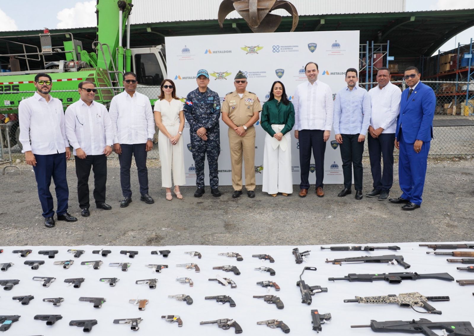 La intervención se llevó a cabo en las instalaciones de Metaldom, ubicadas en el Parque Industrial Duarte, donde el armamento fue previamente verificado por técnicos especializados para garantizar el cumplimiento de los protocolos de seguridad antes de su destrucción.