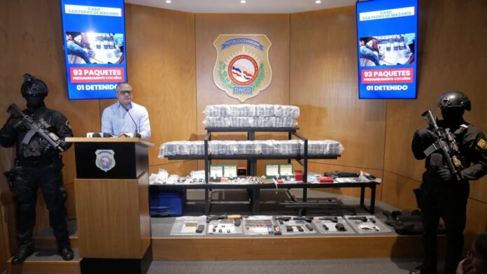 Santo Domingo.- En una operación de interdicción conjunta, agentes de la Dirección Nacional de Control de Drogas (DNCD) y miembros del Ministerio Público, desmantelaron una poderosa estructura de narcotráfico, donde incautaron más de 90 paquetes presumiblemente cocaína, armas de alto calibre, dinero en efectivo, prendas, vehículos y otras evidencias, en varios allanamientos simultáneos desarrollados en la provincia de San Pedro de Macorís.