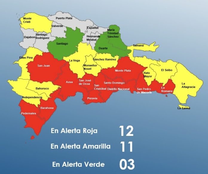 Estas demarcaciones se unen a las antes anunciadas y que continúan con la misma advertencia, Distrito Nacional, San Cristóbal, Peravia, San José de Ocoa, Azua, San Juan, Barahona y Pedernales.