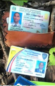Junto al cadáver se encontró su cartera con documentos personales, incluyendo su cédula, carnet de la Policía Nacional y seguro médico.