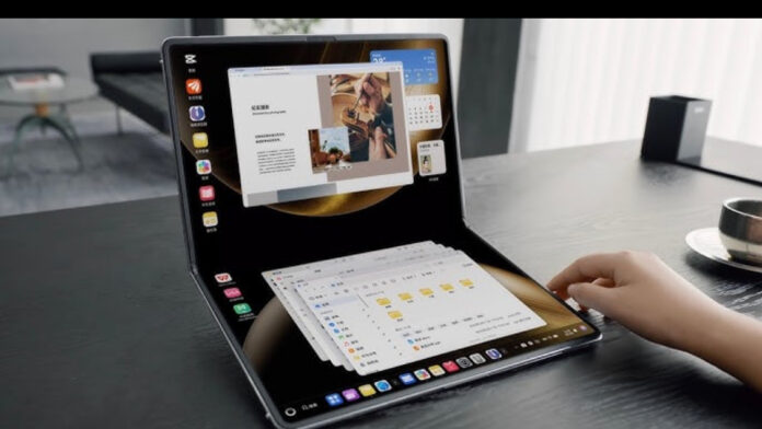 El nuevo MateBook Fold cuenta con una pantalla OLED LTPO plegable de 18,3 pulgadas, capaz de transformarse en un formato más compacto de 13,3 pulgadas al cerrarse.