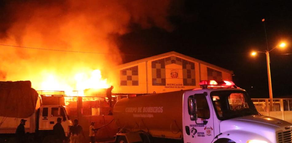 DAJABÓN. Un incendio de origen desconocido afecta en este momento las instalaciones del mercado binacional de Dajabón.