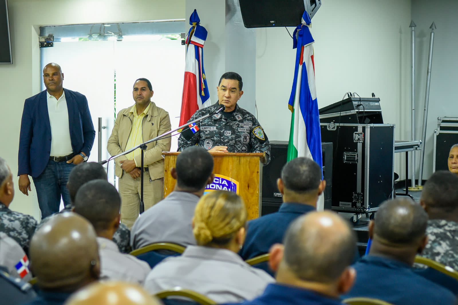 El mayor general Eduardo Alberto Then estuvo acompañado por los generales, Pedro Eugenio Cordero Ubri, Inspector general; Máximo Ramírez De Oleo, director de Recursos Humanos; Rufino A. Contreras Ruiz, director Regional La Vega; Minoru Matsunaga Matsunaga, director de la Policía de Turismo (Politur) y el coronel retirado José Castro Guzmán.
