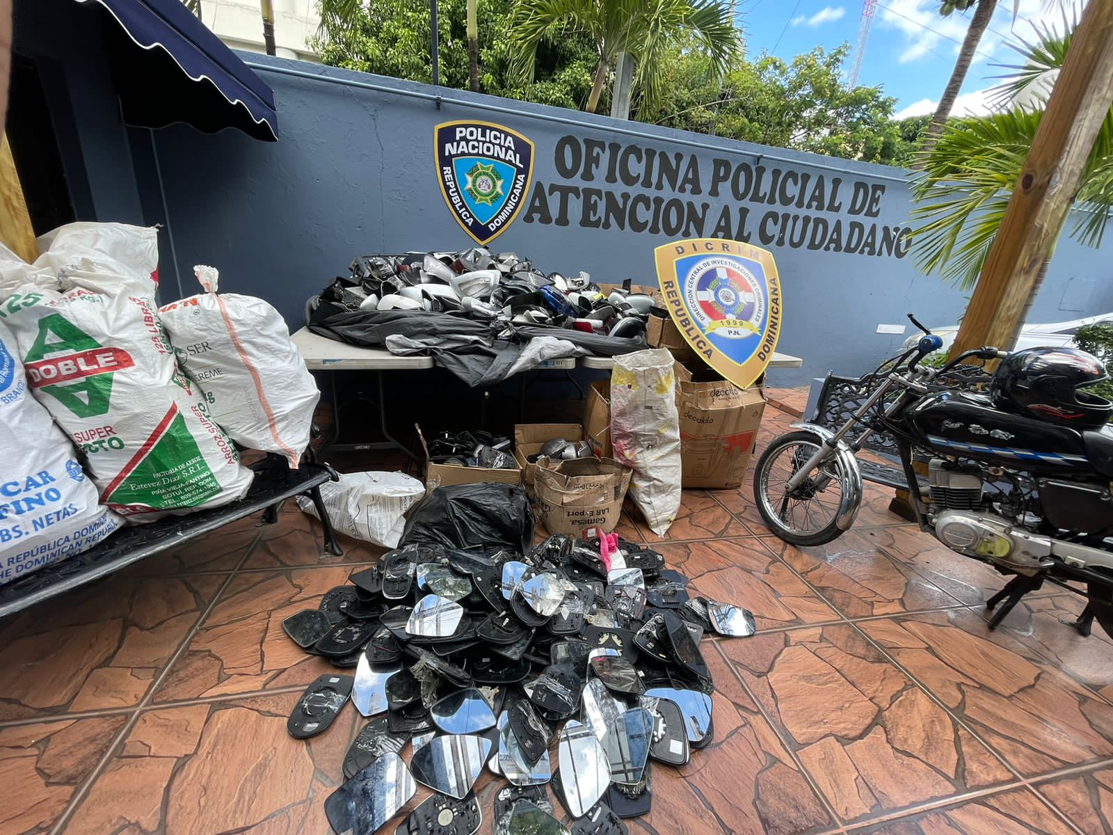 Agentes policiales, adscritos a la Dirección Central de Investigación (DICRIM), apresaron en el sector Villas Agrícolas, Distrito Nacional, a dos presuntos delincuentes, incluyendo un menor de edad, a quienes ocuparon 751 espejos retrovisores, 252 juegos de retrovisores completos, siete kit completos y una caja con diferentes accesorios de vehículos.