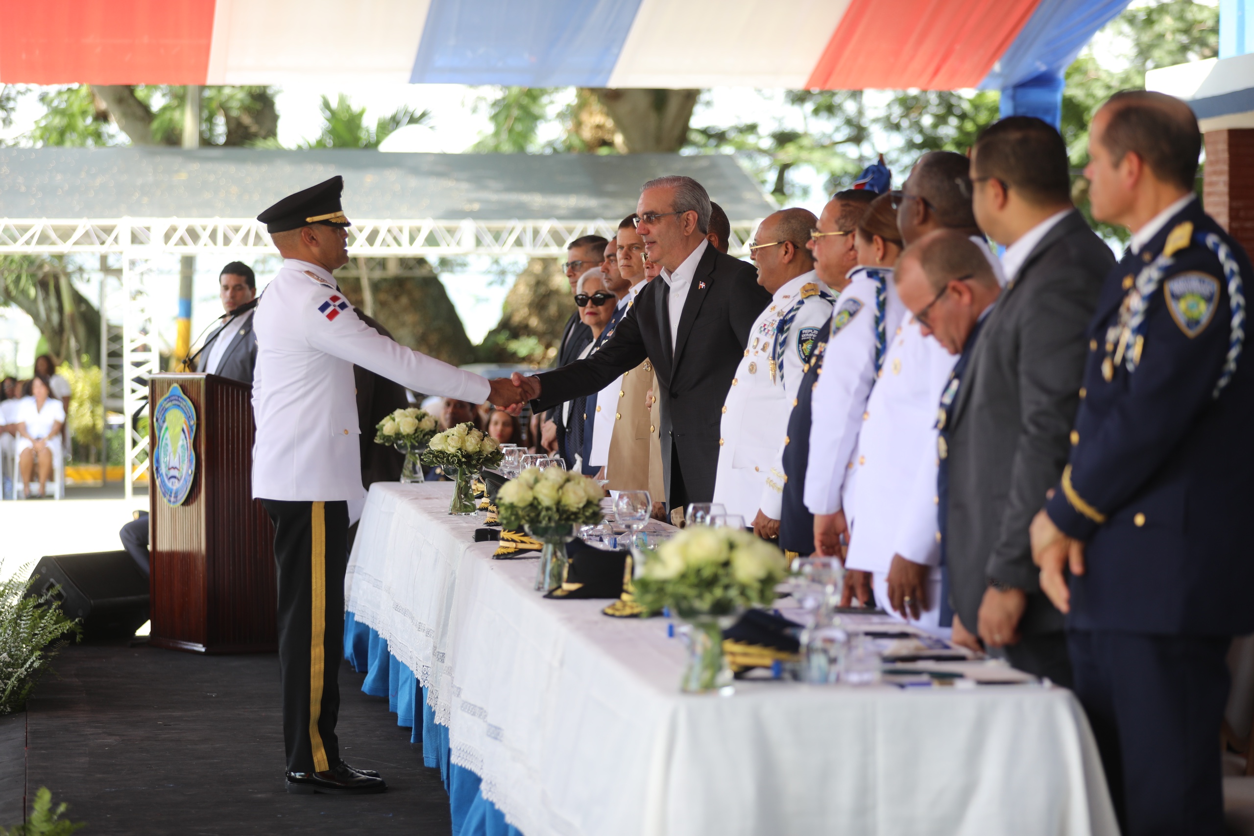 El presidente Abinader tomó el Juramento a los nuevos oficiales y encabezó el ceremonial de entrega de entrega de sables, símbolo del compromiso institucional asumido por los cadetes como oficiales policiales.