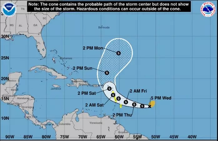 Las islas de Barbados, Dominica, Martinica y Guadalupe se hallan bajo «vigilancia de tormenta tropical», es decir, con el pronóstico de registrar condiciones ciclónicas dentro de 48 horas.