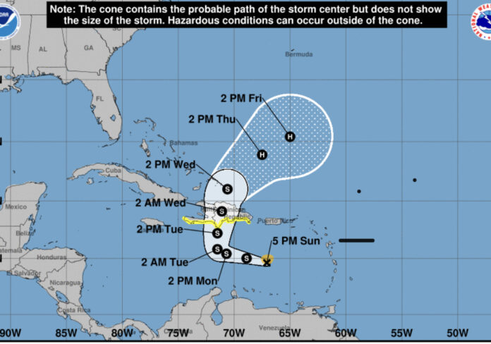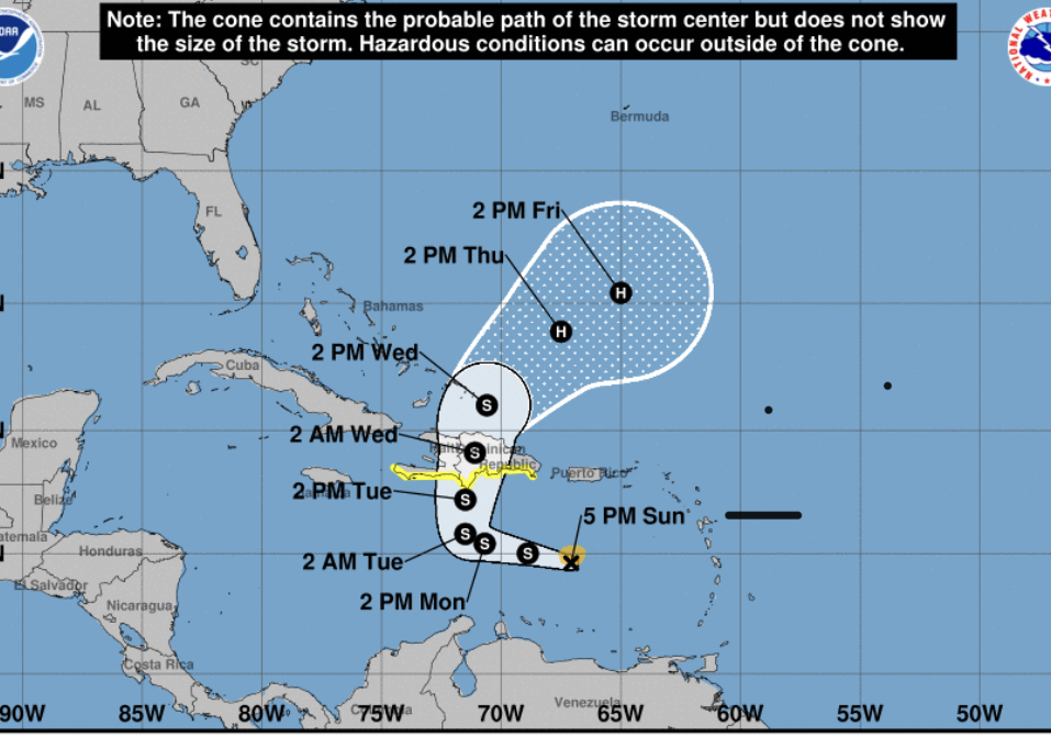 Así lo informó el Centro Nacional de Huracanes de Estados Unidos en su cuenta de Twitter, donde emitió diversas alertas para la costa sur de la isla Hispaniola.
