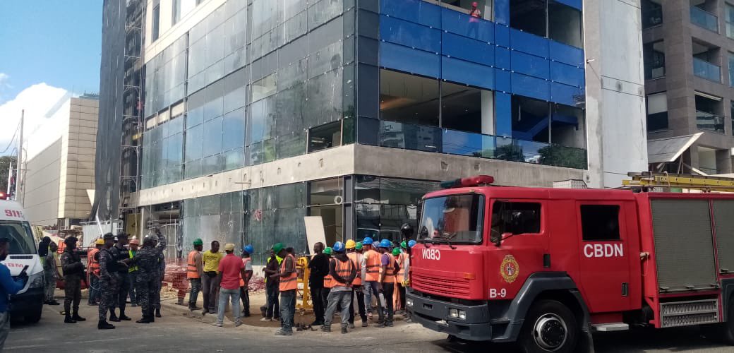Una persona falleció y otras cuatro resultaron heridas tras caerse desde el andamio de una torre en construcción ubicada próximo a la avenida Winston Churchill en el Distrito Nacional.
